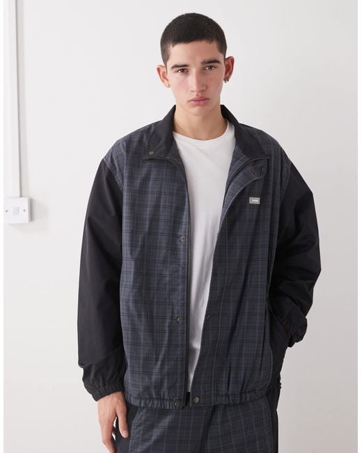 Jacken & Mäntel von Xlarge Karomuster Logoplakette kontrastierende Ärmel Stehkragen Reißverschluss und Druckknöpfe Seitentaschen elastische Bündchen an Ärmeln und Saum Sturmklappe Lockere Passform. Farbe: blau