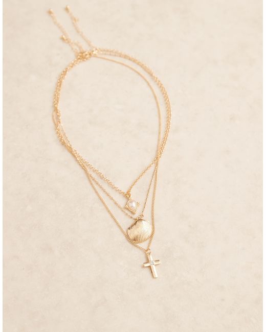 Schmuck von ASOS DESIGN Dreierset verschiedene Ketten verschiedene Anhänger Längenverstellbar Karabinerverschluss. Farbe: natur