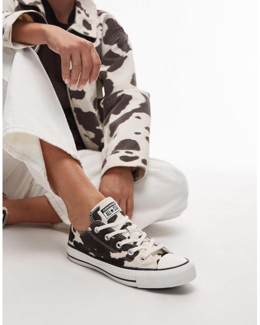 Schuhe von Converse Tierfellmuster Mit flacher Sohle Zum Schnüren Markentypisches Converse All Star-Logo Belüftungsösen innen am Fuß Zehenkappe und Außensohle aus vulkanisiertem Gummi Archiv-Gummibesatz geometrisches Profil Unisex-Stil. Farbe: weiß