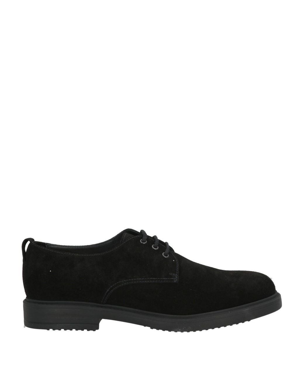 DOUCAL'S. Schnürschuhe, Wildleder, einfarbig, ohne Applikationen, runde Spitze, Niedriger Absatz, Innenfutter aus Leder, Gummisohle, Enthält nichttextile Teile tierischen Ursprungs., groß ausfallend. Leder. Farbe: schwarz