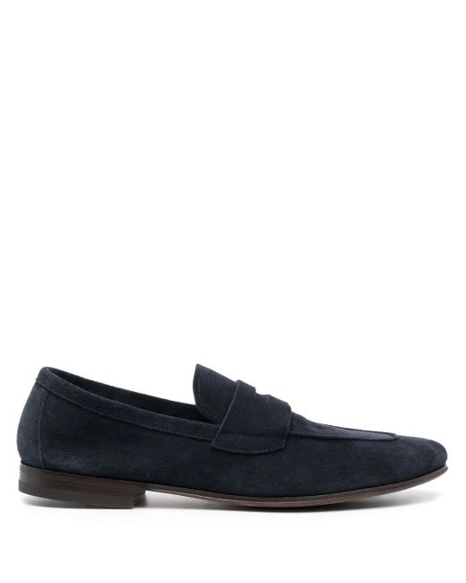 Marineblau, Leder, Lederinnensohle mit Logo-Prägung, mandelförmige Kappe, ohne Verschluss, niedriger Absatz. This item may not be on sale in France, UK, Italy, Belgium and Switzerland.