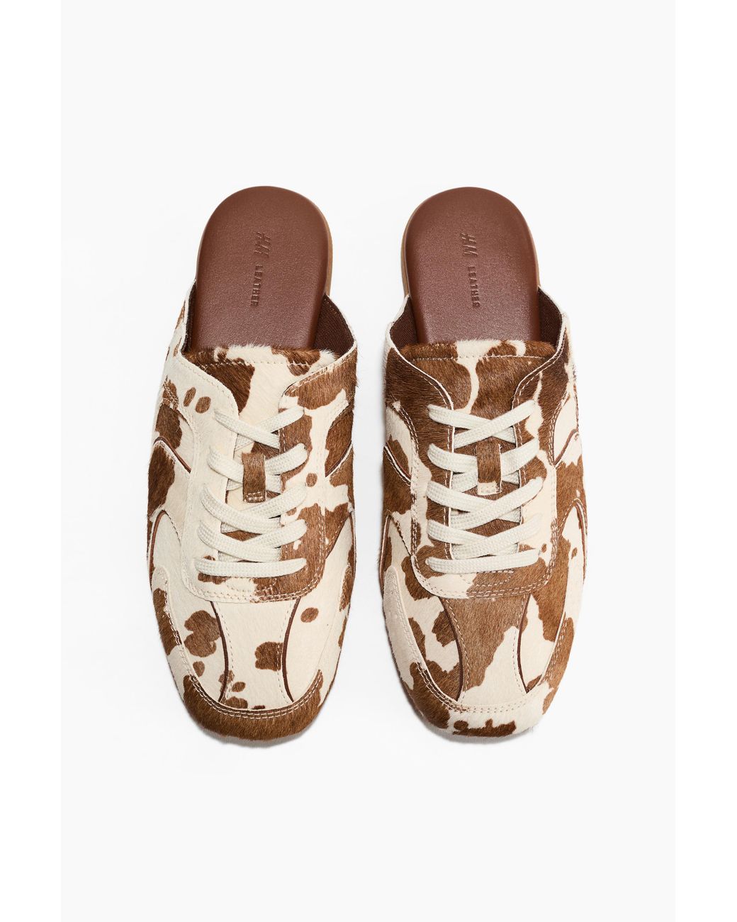 Geschnürte Mules im Sneaker-Stil aus weichem Leder mit strukturiertem, gepeachtem Finish und einer wattierten Zunge. Futter aus Mesh und Innensohle aus Leder. Farbe: natur