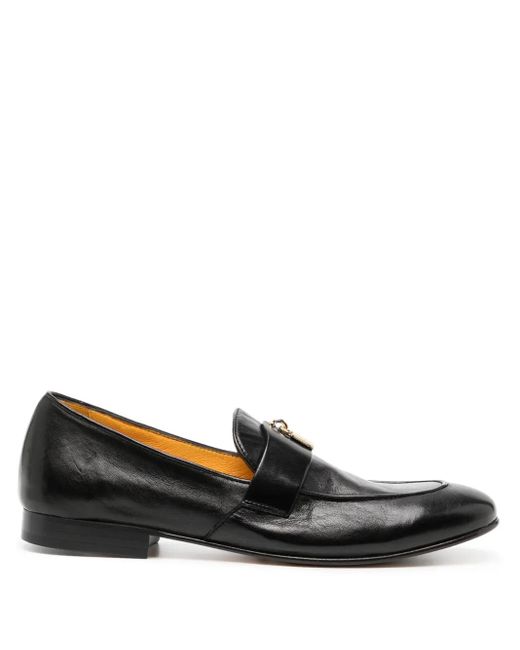 Schwarz Kalbsleder Vorhängeschloss Slip-On-Design mandelförmige Kappe Lederinnensohle mit Logo-Prägung Schichtsohle Ledersohle goldfarbene Beschläge Size: 36. Gender: Female. Material:Kalbsleder/Kalbsleder/Kalbsleder. Farbe: schwarz
