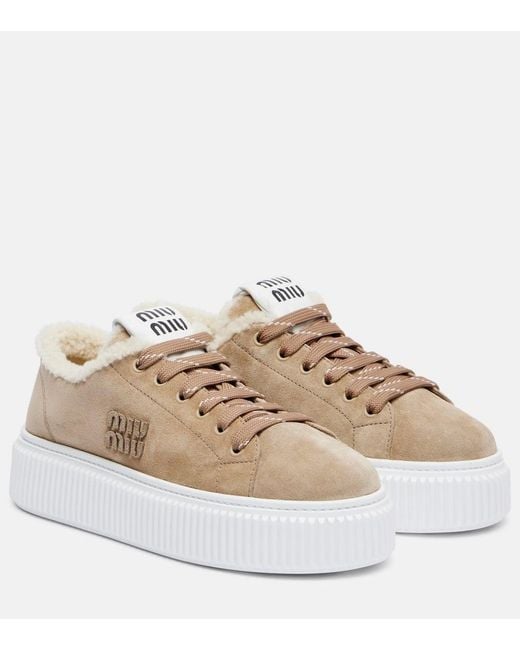 - Plateau-Sneakers Aus Veloursleder Mit Shearling