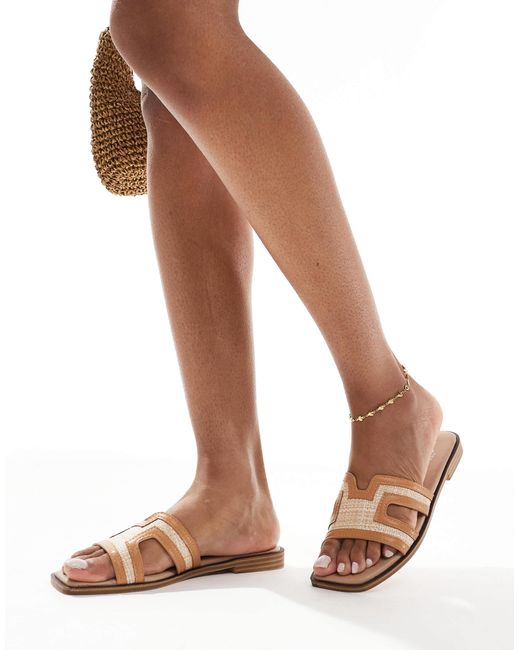 Schuhe von New Look Breiter Riemen Zum Überziehen Offene Zehenpartie Flache Sohle. Farbe: natur