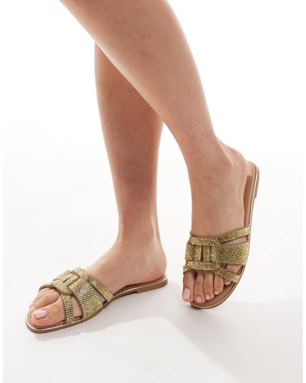 Schuhe von New Look Verziertes Design Zum Überziehen Vorn überkreuzte Träger Offene Zehenpartie Flache Sohle. Farbe: braun