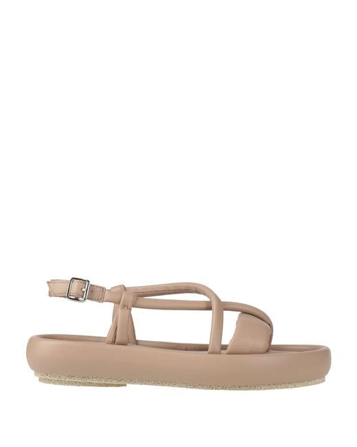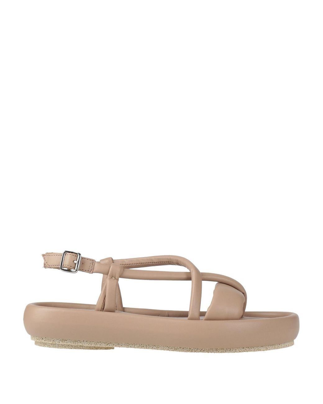 PATRIZIA BONFANTI. Slingback-Sandalen, Leder, Mit Metallic-Effekt, einfarbig, ohne Applikationen, Schnallenverschluss, runde Spitze, Flatform, Gummisohle, Innenfutter aus Leder, Enthält nichttextile Teile tierischen Ursprungs.. Leder. Farbe: natur