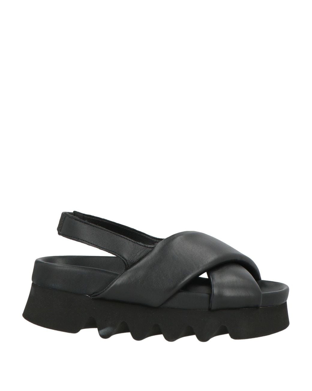 PATRIZIA BONFANTI. Slingback-Sandalen, Leder, einfarbig, ohne Applikationen, Elastische Einsätze, runde Spitze, Keilform, Gummisohle, Innenfutter aus Leder, Enthält nichttextile Teile tierischen Ursprungs.. Leder. Farbe: schwarz