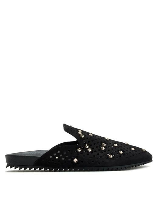Damen Perforierte Braidy Mules mit Kristallen in schwarz