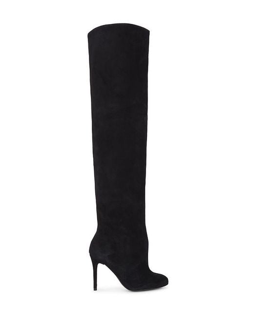 RAYE BOOT QUARTZ in Black. Größe 5.5. Also in 6, 6.5, 7, 7.5, 8, 8.5, 9, 9.5. RAYE BOOT QUARTZ in Black. Size 6, 6.5, 7, 7.5, 8, 8.5, 9, 9.5. Obermaterial Veloursleder, Sohle Synthetik. Hergestellt in Brasilien. Schlupfform. Oversize fit at knee. Leather footbed with suede lining. Mandelförmige Spitze. Ca. 100mm/ 4 Zoll hoher AbsatzCa. 711.2mm/ 28 Zoll hoher SchaftCa. 76 cm hoher Schaft. RAYE-WZ2964. RYSH10110 H25. Farbe: schwarz