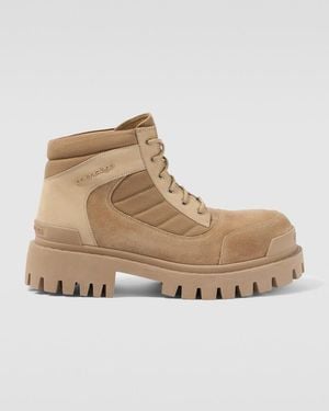 Freizeitstiefel von Balenciaga - Perfektion in Handwerkskunst und Stil. Diese exquisiten Stiefel werden Ihre Garderobe auf ein neues Level heben. Mit ihrem markanten Design, hochwertigen Obermaterialien und einer robusten Sohle sind sie ein Symbol für erstklassiges Handwerk. Die Schnürung verleiht diesen Schuhen einen modernen Appeal und sorgt für einen sicheren Halt. Egal, ob Sie einen Spaziergang in der Stadt machen, ein gesellschaftliches Event besuchen oder abenteuerlustige Aktivitäten im Freien unternehmen - diese Stiefel sind die perfekte Ergänzung für Ihren Look. Kombinieren Sie sie mit klassischen Jeans oder einem eleganten Mantel für einen stilvollen Auftritt.