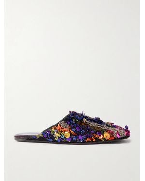 Slippers Aus Glänzendem Crêpe Mit Verzierungen - Blau