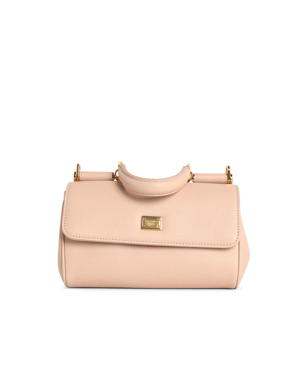 Hergestellt aus "Dauphine"-Kalbsleder, Vorderklappe mit doppeltem verstecktem Magnetverschluss, Bigalvanic-Logo-Tag, Tragegriff oben und verstellbarem und abnehmbarem "Dauphine"-Kalbsleder-Schultergurt, bedrucktem Stofffutter und flacher Tasche \n19 x 13 x 6 cm. DOLCE & GABBANA. KLEINE HANDTASCHE AUS LEDER "SICILY" NACKT. Farbe: natur