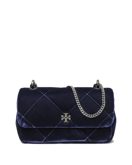 Damen Mini Kira Samt-Umhängetasche Mit Rautensteppung in blau