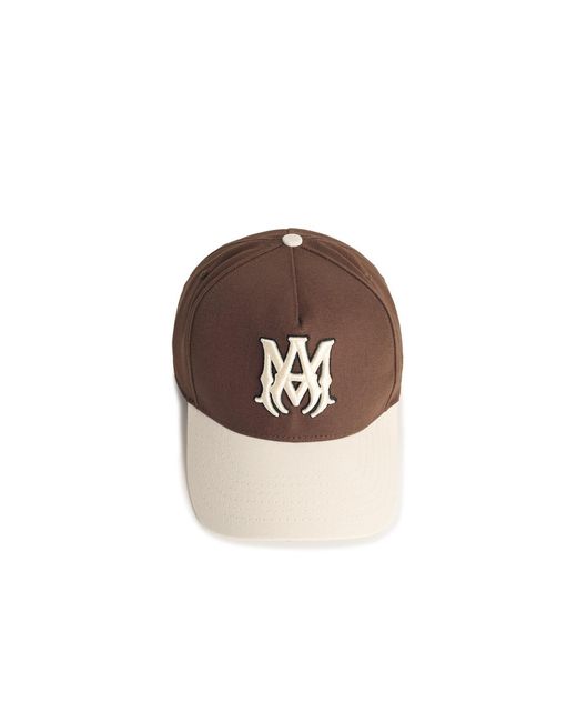 Kontrastierendes Hartvisier, vorderer Aufnäher mit geprägtem Logo, kontrastierendes gesticktes seitliches Logo, verstellbarer Verschluss hinten mit Druckknopfverschluss, hinterer Aufnäher mit geprägtem Logo. AMIRI. BRAUNE BAUMWOLLHUT. Farbe: mehrfarbig