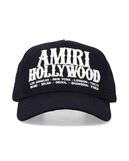 Die Marke kanalisieren"s L.Der Amiri Hollywood Trucker Hat ist ein echter Hingucker und verfügt über eine strukturierte Krone, die mit der Hollywood-Logografik der Saison bestickt ist. Die gebogene Krempe und die atmungsaktiven Ösen sorgen für alltäglichen Komfort, während der doppelte Snapback-Verschluss auf der Rückseite für eine verstellbare, sichere Passform mit straßentauglicher Attitüde sorgt. Trucker-Mütze mit strukturierter Krone. AMIRI Hollywood-Grafik und Logo-Stickerei. Gebogene Krempe. Gestickte Luftösen. Doppelter Snapback-Verschluss hinten. Farbe: schwarz