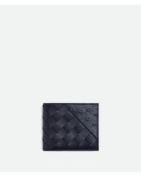 Bottega Veneta Herren Slim Intrecciato Bi-Fold Portemonnaie in blau