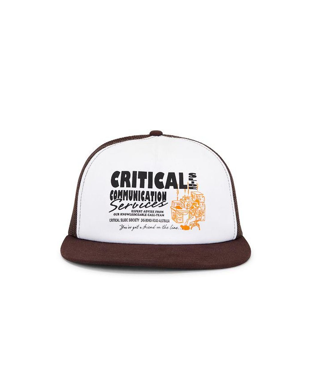 Critical Slide HUT COMMUNICATION in Brown. Critical Slide HUT COMMUNICATION in Brown. 100% Baumwolle. Handwäsche. Graphisches Logo vorne. Netzrückwand. Verstellbarer Rückenriemen. Twill-Stoff. Krempe ca. 6 cm breitUmfang ca. 66 cm. CSLI-MA4. HW25162. Farbe: braun