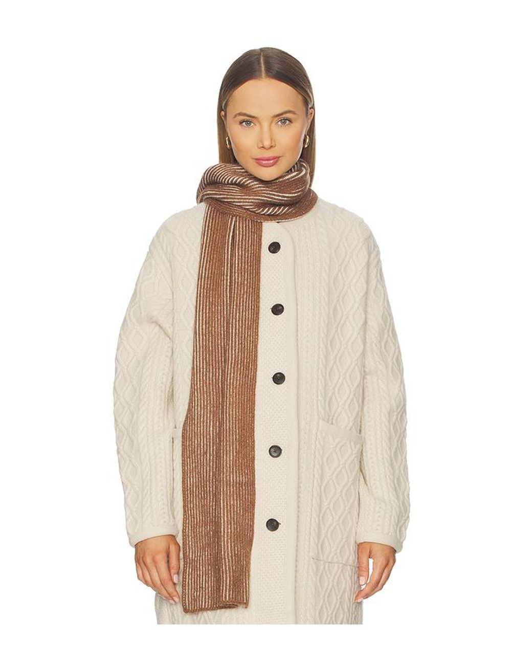 Varley SCHAL DEVILLE in Brown. Varley SCHAL DEVILLE in Brown. Fully fashion knit. Handwäsche. Ca. 93 cm breit und 66 cm hoch. VARR-WA22. VAR02827. Farbe: natur