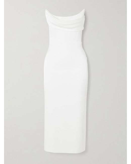 Damen Strapless Draped Satin-Crepe Midi Dress in weiß