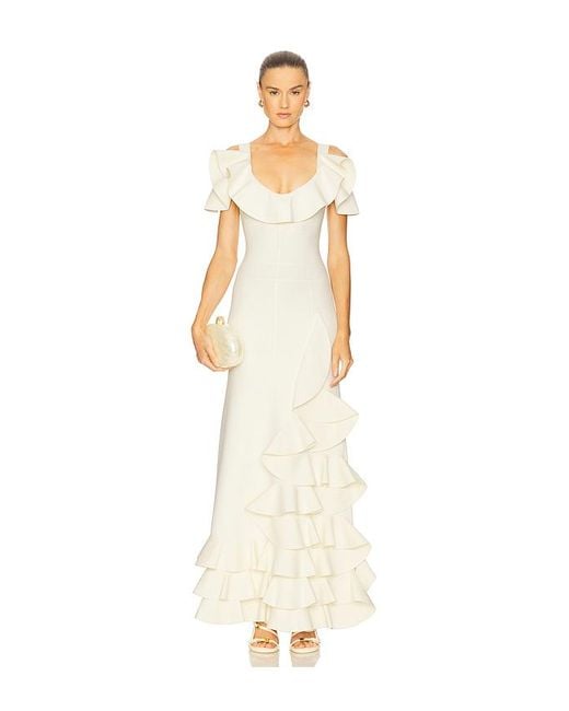 Alexis KLEID LUCY in Ivory. Größe L. Also in M, XS. Alexis KLEID LUCY in Ivory. Size M, XS. Chemische Reinigung. Ungefüttert. Schlupfform. Thick ponte fabric with ruffled bust and hem. AXIS-WD914. A2250404-0611. Farbe: weiß