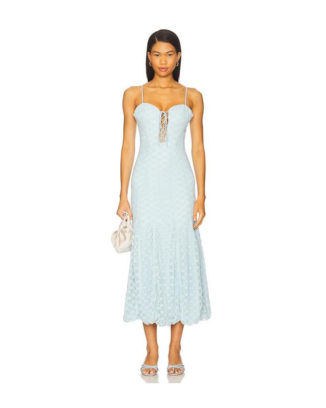 Bardot MIDI-KLEID DELANEY in Baby Blue. Größe 10. Also in 12, 2, 4, 6, 8. Bardot MIDI-KLEID DELANEY in Baby Blue. Size 12, 2, 4, 6, 8. Hauptmaterial: 45% Polyamid, 40% Baumwolle, 15% ElasthanFutter:100% Polyester. Handwäsche. Durchgehend gefüttert. Verdeckter Reißverschluss hinten. Verstellbare Träger. Boned bodice with front lace-up tie closure. Spitze in schwerer Qualität. BARD-WD1016. 59928DB. Farbe: weiß