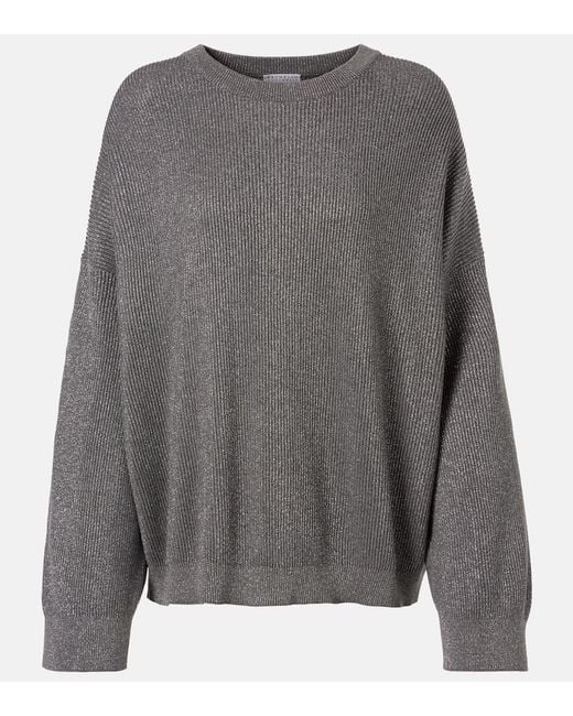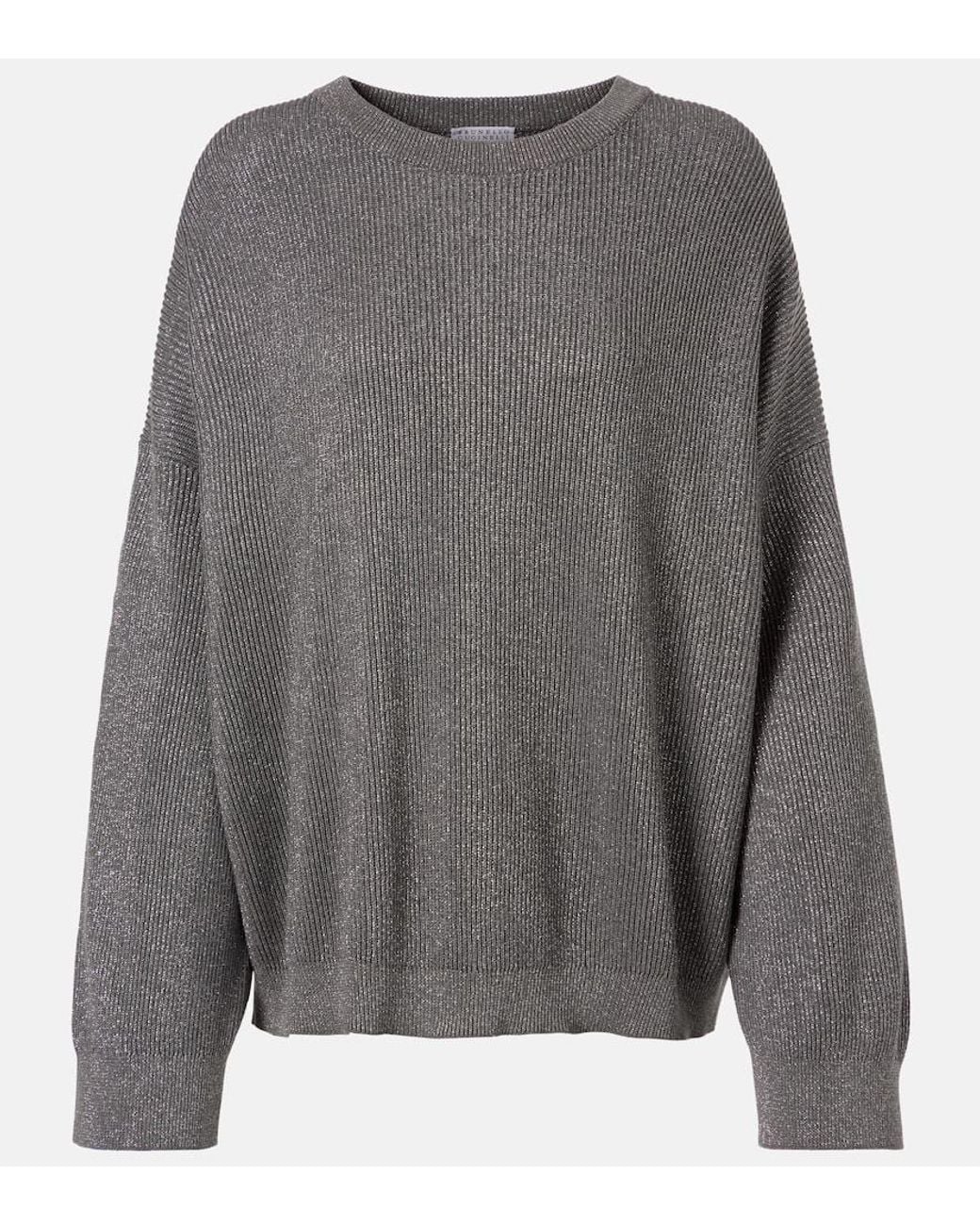 Material: 72% Baumwolle, 22% Viskose, 6% Metallfasern. Pflegehinweis: Handwäsche. Made in Italy. Designer-Farbbezeichnung: Grigo Scuro. Halsausschnitt: Rundhalsausschnitt. Ärmelabschluss: gerippte Ärmelbündchen. Saum: gerippter Saum. Baumwolle. Farbe: grau