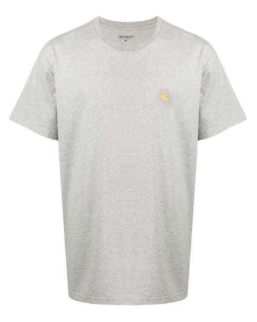 Heather Grey/Gold -Baumwolltrikot -Strick -gestickte Logo am Brustbesatzungshals kurze Ärmel gerade Saum. Farbe: weiß