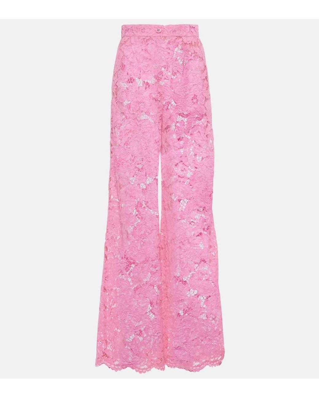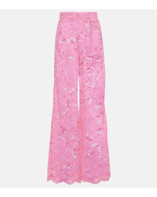 Damen Ausgestellte Hose Aus Elastischer Spitze Mit Logo in pink
