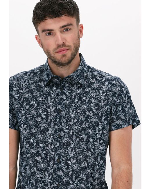 Blaue Dstrezzed Casual-Oberhemd Shirt S/S Line Flower Voile Herren. Farbe: mehrfarbig