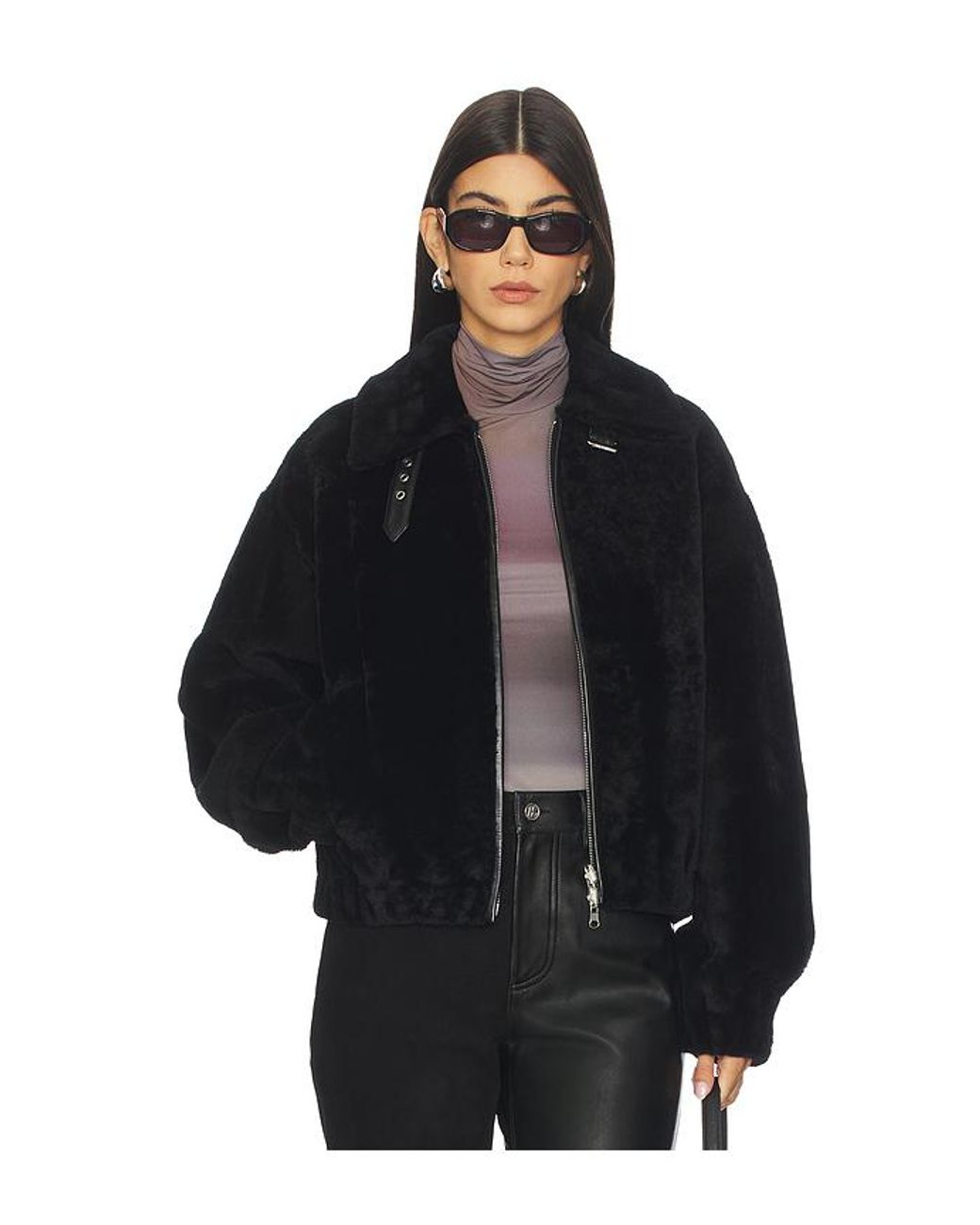 Helmut Lang BOMBERJACKE MIT LAMMFELL in Black. Größe M. Also in XS. Helmut Lang BOMBERJACKE MIT LAMMFELL in Black. Size XS. Lederspezialreinigung. Vorderseiten Doppelreißverschluss. Seitennahttaschen. Silver-tone buckle detailing at collar. Rippbündchen. Pelz in schwerer Qualität mit Futter aus Leder. HLNR-WO53. P07HW102. Farbe: schwarz