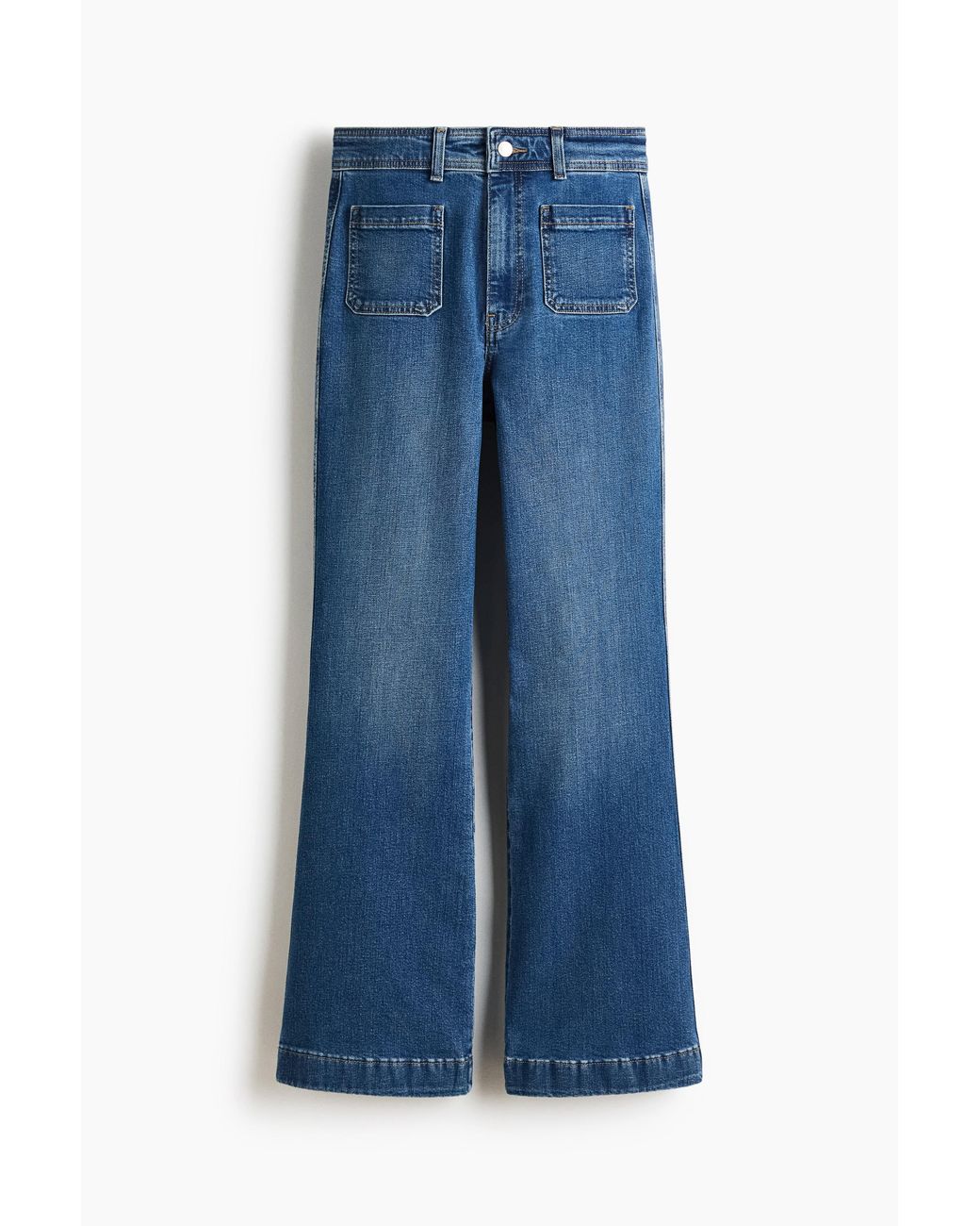 Jeans aus Baumwolldenim mit etwas Stretch für den guten Tragekomfort. Ein Flared-Modell mit schmaler Passform an Taille und Oberschenkeln und einem ab Knie ausgestellten Bein. Hoher Bund mit Zip Fly und Knopf. Aufgesetzte Taschen vorne und hinten. Normale Länge. Dieses Modell ist so designt, dass vorn am Fuss ein leichter oder gar kein Stacking-Effekt entsteht. Eine Silhouette, die jede Saison mitmacht. Farbe: blau