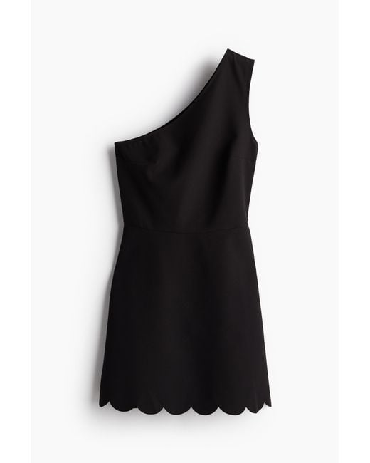 Kurzes, asymmetrisches One-Shoulder-Kleid mit einem breiten Träger und verdecktem Seitenreissverschluss mit Häkchenverschluss. Figurbetonter Schnitt. Abnäher im Rücken, Teilungsnaht an der Taille und ein gelaserter Wellensaum. Ungefüttert.