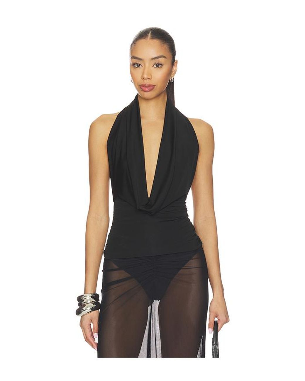 Lapointe OBERTEIL COWL NECK in Black. Größe M. Also in S. Lapointe OBERTEIL COWL NECK in Black. Size S. Hergestellt in den USA aus Importmaterialien. Handwäsche, kalt. Schlupfform. Leichter Jersey-Stoff. Neckholderstyling. Exposed back. LOIN-WS76. R1262319OKC. Farbe: schwarz