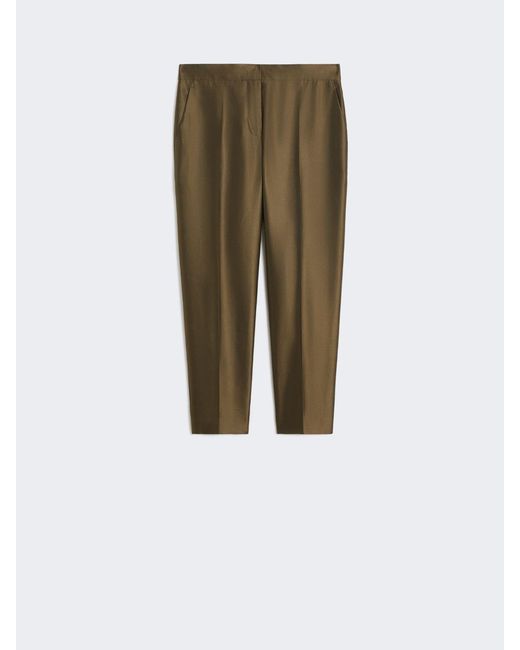 Knöchellange Hose mit Karotten-Passform und mittelhoher Taille. Hose aus Shantung aus Baumwolle und Seide Am Saum leicht geschlossene Passform Hoher Bund, Reißverschluss mit Patte und Häkchen Schräg angesetzte, seitliche Eingriffstaschen Bundfalten hinten Mit Zierstick-Finish und Bügelfalte Farbe: grün