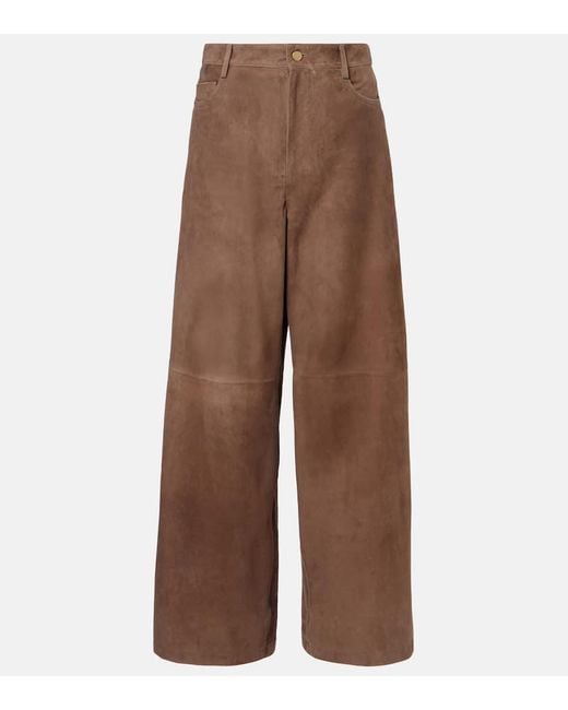 Weite High-Rise-Hose Brando Aus Veloursleder - Braun