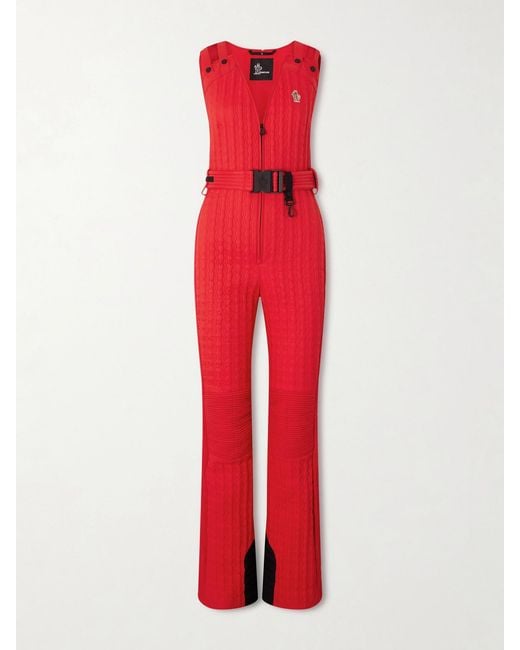 Damen Gesteppter Skianzug Mit Daunenfüllung, Applikation Und Gürtel in rot