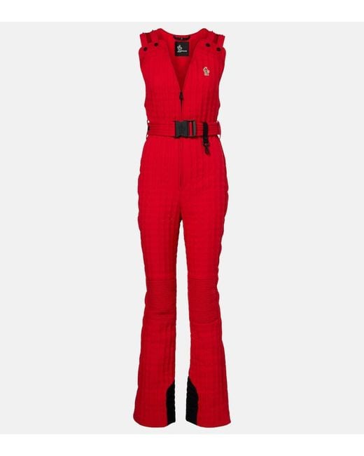 Gesteppter Skianzug Mit Daunenfüllung, Applikation Und Gürtel - Rot