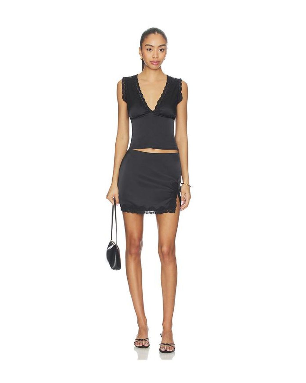 MORE TO COME KLEID ELSA in Black. Größe L. Also in M, S, XL, XS, XXS. MORE TO COME KLEID ELSA in Black. Size M, S, XL, XS, XXS. Hauptmaterial: 95% Polyester, 5% ElasthanFutter:100% Polyester. Hergestellt in China. Chemische Reinigung. Durchgehend gefüttert. Versteckter seitlicher Reißverschluss. Lightweight satin textile with lace trims. Verkauf im Set. Rock ca. 37 cm lang. MOTO-WD948. MTD766 S25. Farbe: schwarz
