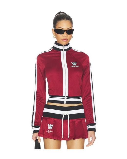 OFF-WHITE JACKE SERENA in Red. Größe 38. Also in . OFF-WHITE JACKE SERENA in Red. Size . Hergestellt in Portugal. Maschinenwäsche, kalt. Reißverschluss vorne. Mock-neck styling. Leichter Jersey-Stoff. Die Artikel werden nicht im Set, sondern einzeln verkauft. OFFR-WO58. OWBD006F25JER0012670. Farbe: rot