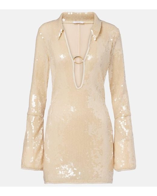 Damen Minikleid Marylin O Mit Pailletten in natur
