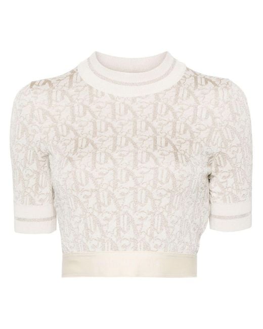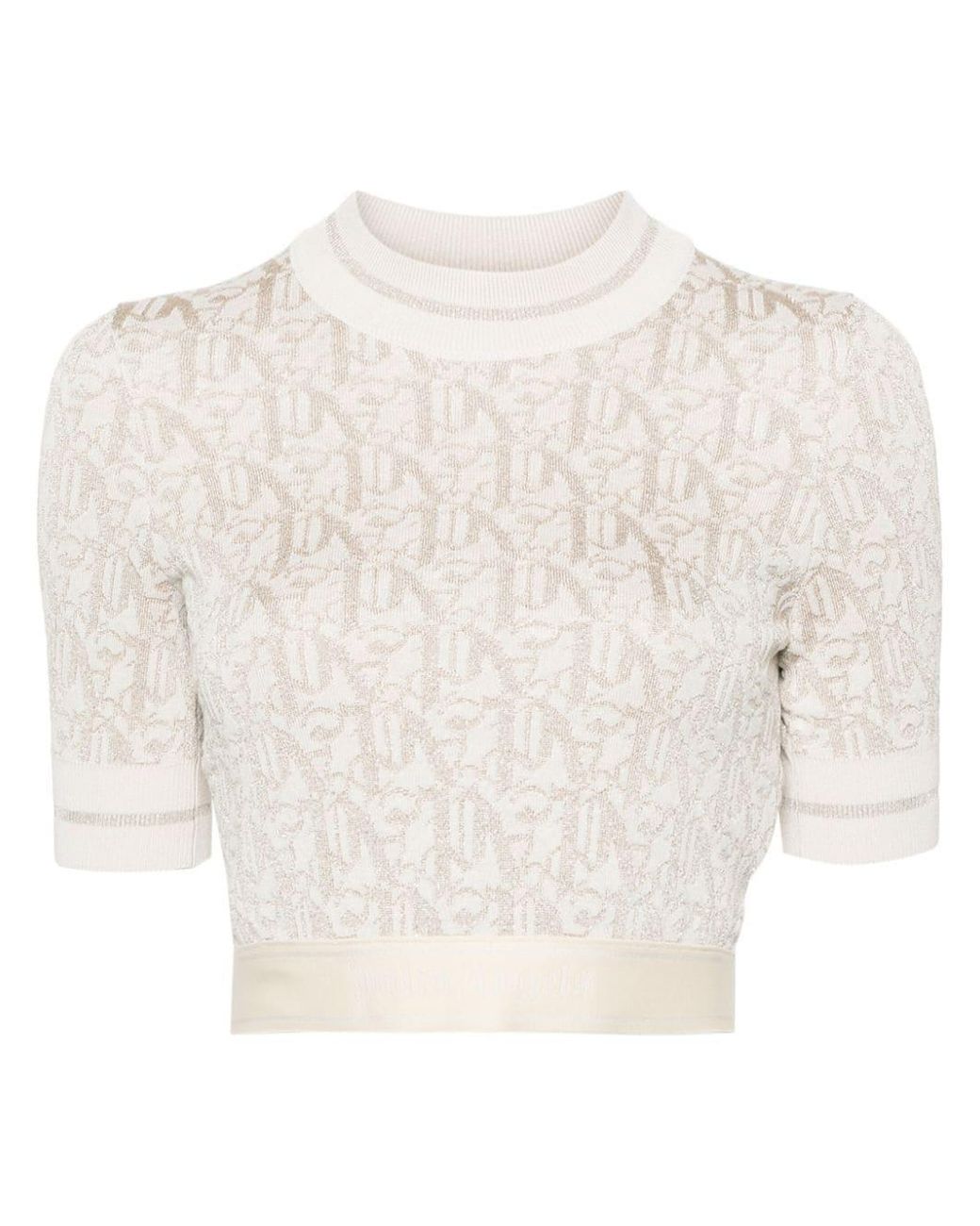 Mit diesem T-Shirt unterstreicht Palm Angels seine Wertschätzung für Modecodes. In goldfarbenem Monogramm-Jacquard gehalten, runden gestreifte Manschetten und ein Markenbund den Look ab. Höhepunkte. Hellbeige. Jersey-Strick. PA-Monogramm-Jacquard. Metallisches Gewinde. Gestreifter Hals und Manschetten. Gerippter Rundhalsausschnitt. Kurze Ärmel. Elastischer Logobund. Beschnitten. Ungefüttert.