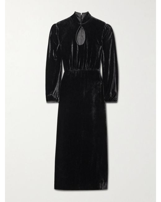 - Domino Midikleid Aus Samt Mit Cut-Out Und Stehkragen