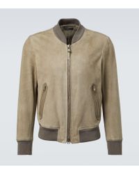 Tom Ford Herren Bomberjacke aus Veloursleder in grün