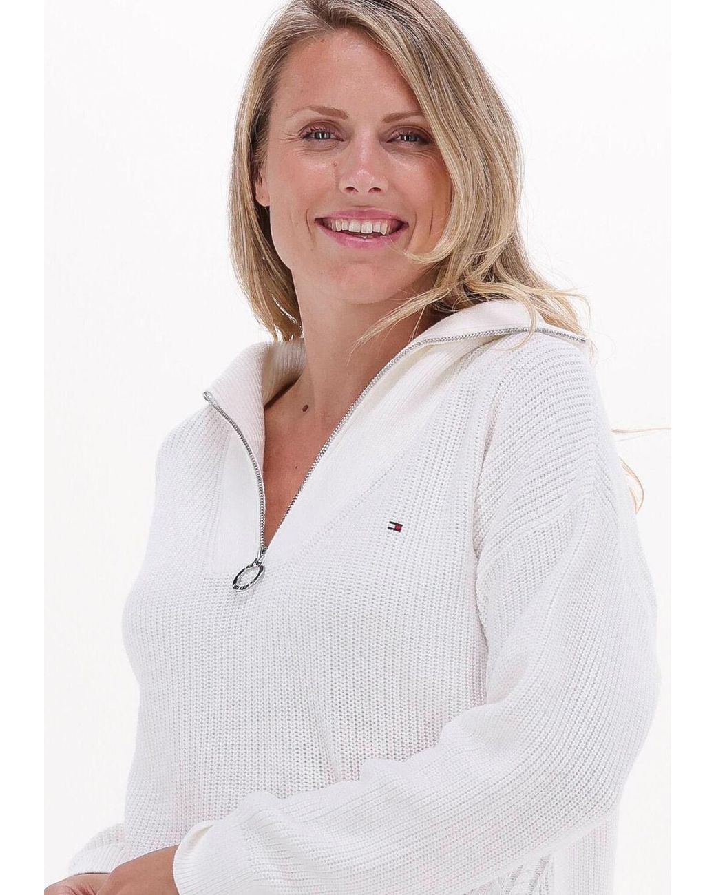 Nicht-gerade weiss Tommy Hilfiger Pullover Hayana Cable Zip-Up Sweater Damen. Farbe: weiß