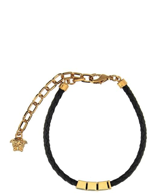 Geflochtenes Kalbslederarmband mit verschiebbarem und verstellbarem "Greca"-Metalldetail und Karabinerhakenverschluss. VERSACE. 'Greca'-Armband. Einheitsgröße – B 17–24 cm. Farbe: mettallic