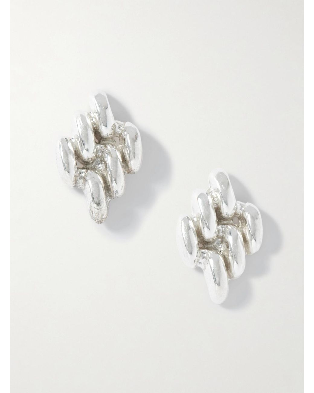 Damen Mini Chain Link Ohrringe Aus Sterlingsilber in weiß