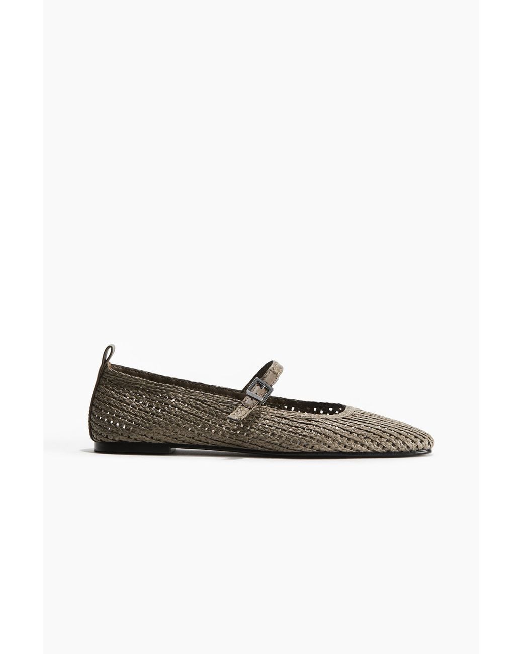 Ballerinas im Mary-Janes-Look aus geflochtenem Kunststoffstroh. Mit mandelförmiger Spitze, Fersenlasche und einem schmalen, verstellbaren Fussriemen mit Metallschnalle. Farbe: natur