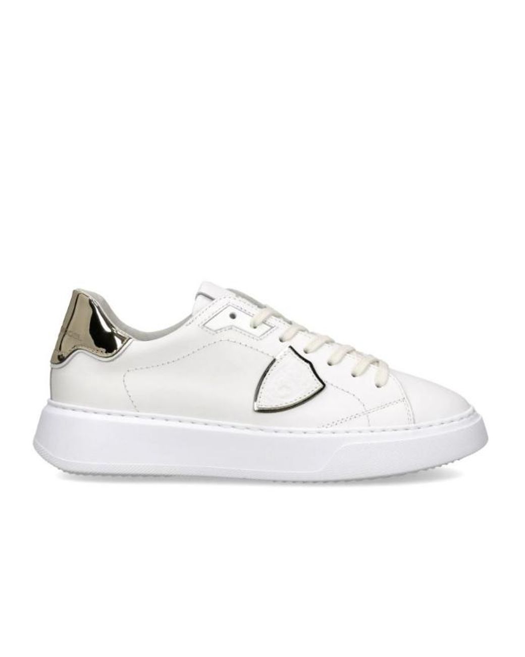 Sneaker aus Kalbsleder mit Spoiler aus Metallic-Vinylleder. Herausnehmbare Einlegesohle aus Memory-Schaum, Futter aus Baumwollfrottee. Ultraleichte Gummilaufsohle mit Absatzhöhe. Farbe: weiß