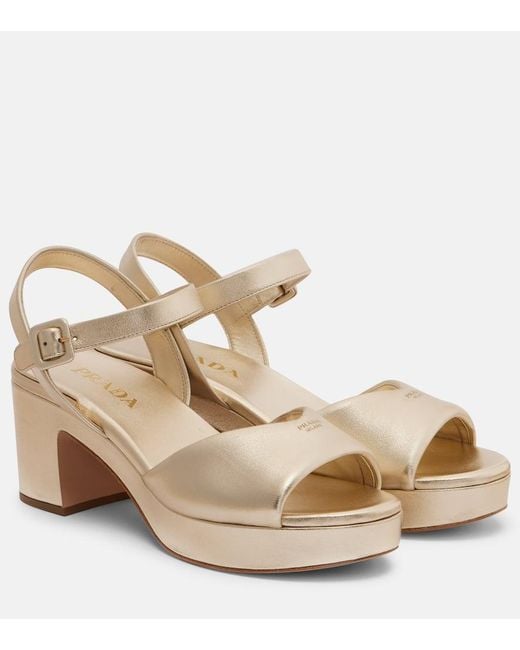 Damen Plateausandalen Aus Metallic-Leder in natur